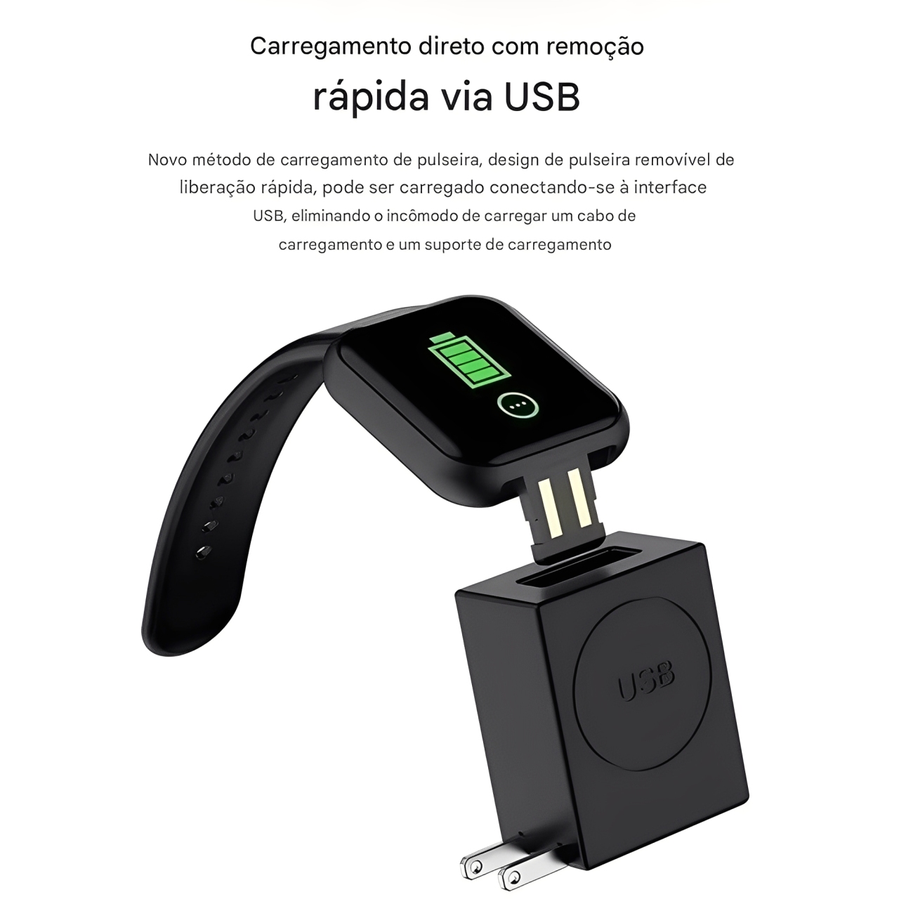✅ Carregamento USB prático — direto em qualquer carregador, sem fios, sem enrolação.